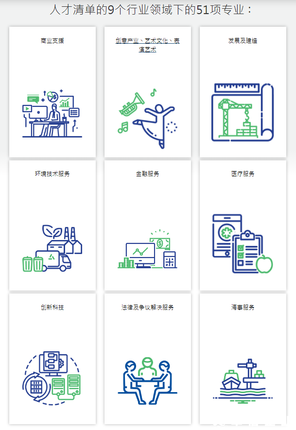 更新的清單涵蓋9個(gè)行業(yè)領(lǐng)域的51項(xiàng)專業(yè)工種,包括商業(yè)支援;創(chuàng)意產(chǎn)業(yè)、藝術(shù)文化、表演藝術(shù);發(fā)展及建造;環(huán)境技術(shù)服務(wù);金融服務(wù);醫(yī)療服務(wù);創(chuàng)新科技;法律及爭(zhēng)議解決服務(wù);以及海事服務(wù)。