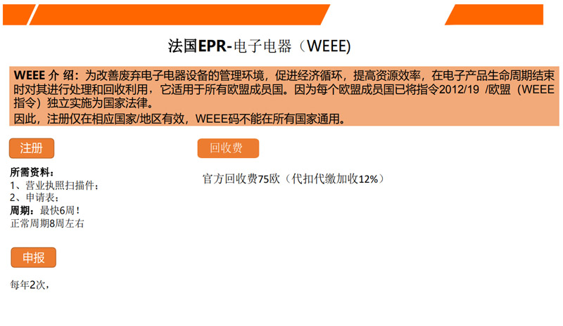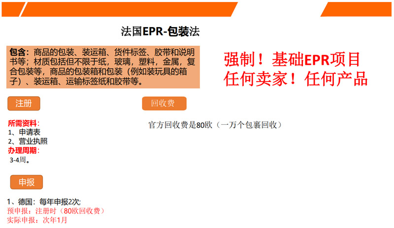 求。故不同歐盟國家注冊EPR號是無法共用的。目前除了德國和法國之外,西班牙、意大利、英國
