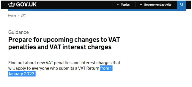 從2023年1月1日起,英國將啟用新的VAT罰款政策,